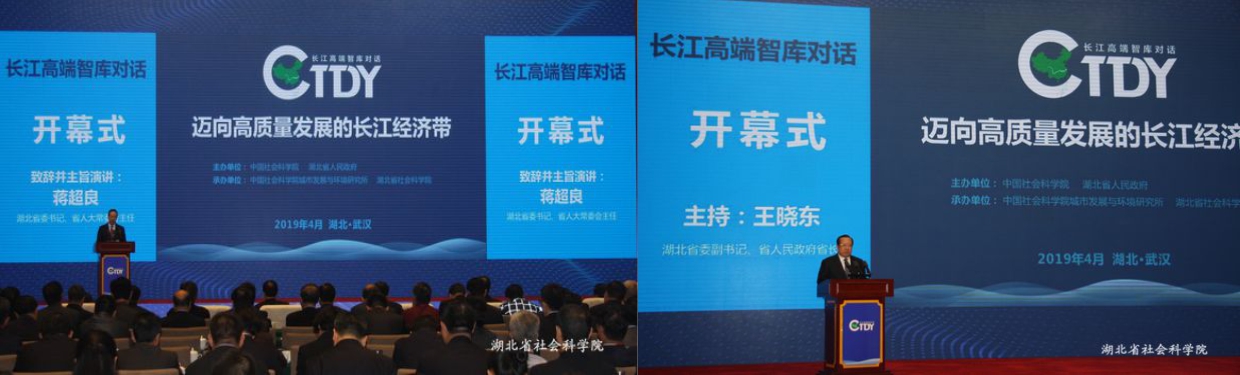 4月22日,由中國社會(huì )科學(xué)院、 湖北省人民政府主辦的“長(cháng)江高端智庫對話(huà)”會(huì )議在武漢開(kāi)幕, 共同探討如何為長(cháng)江經(jīng)濟帶高質(zhì)噩發(fā)展提供高水平的決策咨詢(xún)和智力支持。 湖北省委書(shū)記 、 省人大常委會(huì )主任蔣超良, 中國社會(huì )科學(xué)院黨組書(shū)記、 院長(cháng)謝伏瞻參加開(kāi)幕式, 分別致辭并作 主旨演講。 湖北省委副書(shū)記、 省人民政府省長(cháng)王曉東主待開(kāi)幕式。